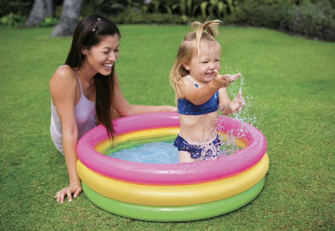 在這個夏天用色彩繽紛的 Sunset Glow 嬰兒游泳池大放異彩。這個可愛的嬰兒游泳池有三個彩色氣環和柔軟的充氣地板,讓您倍感舒適。